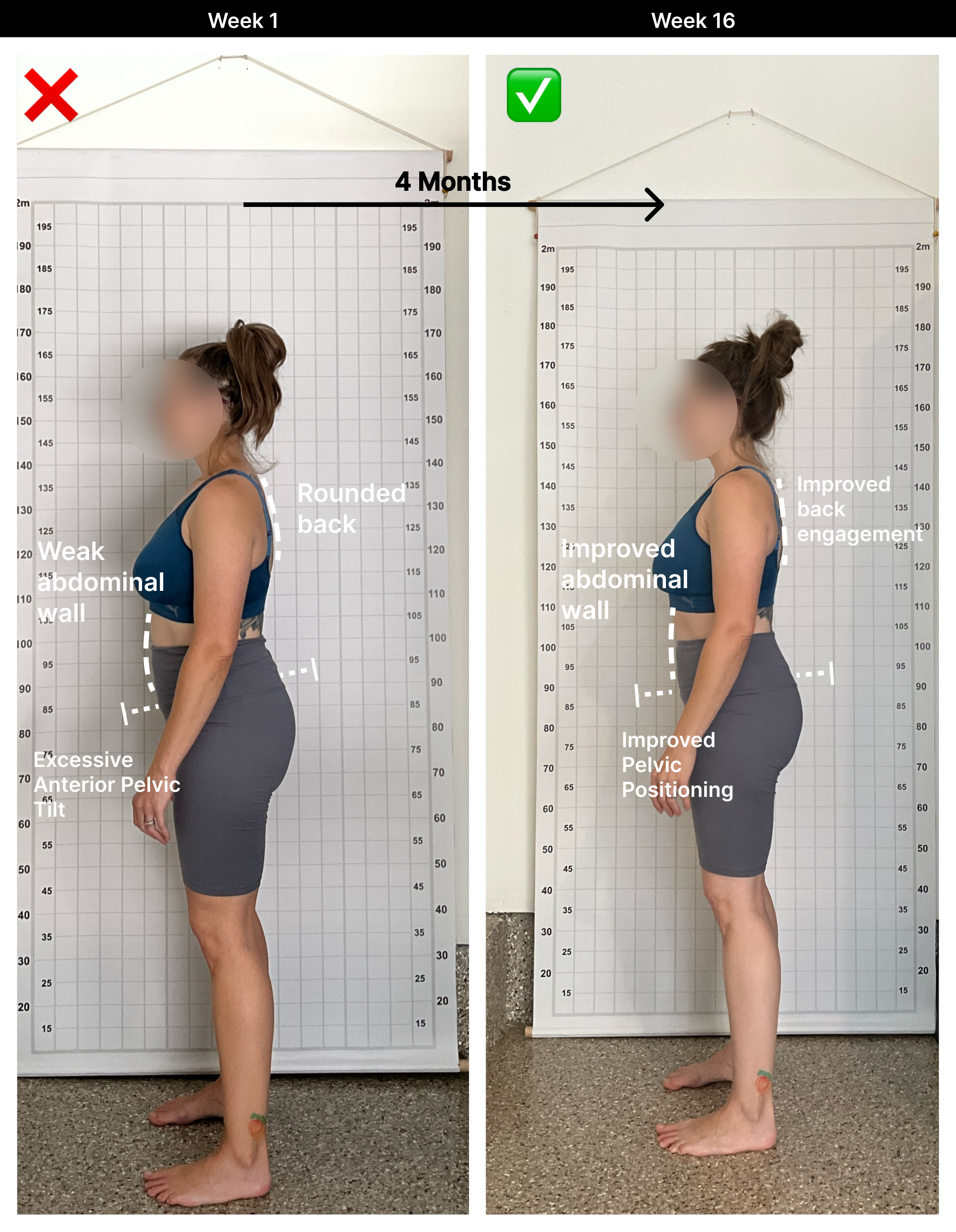 A one-on-one postural evaluation to identify pain sources, postural issues, and movement inefficiencies.